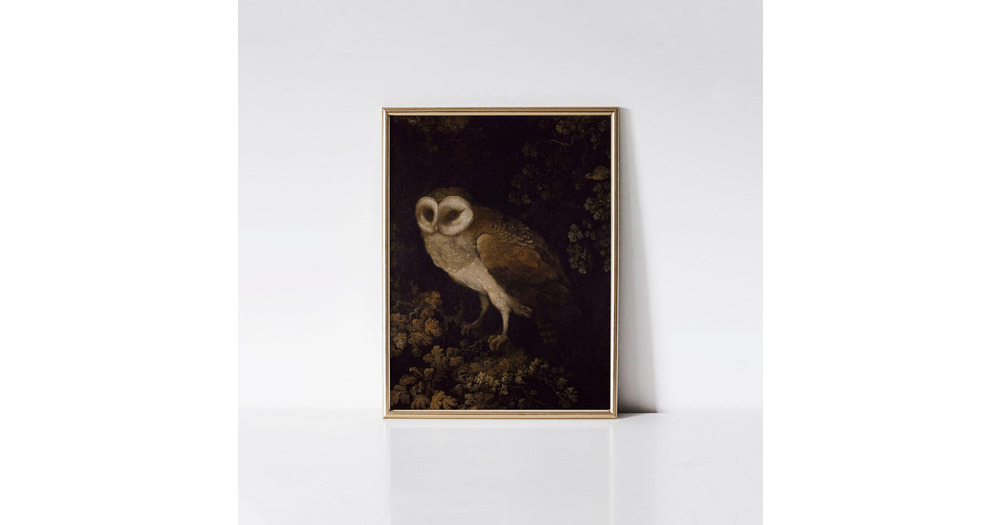 An Owl 1780 by Moses Haughton the Elder Print, Rustic Farmhouse Wall Art, Cottagecore Bird Lover Gif
