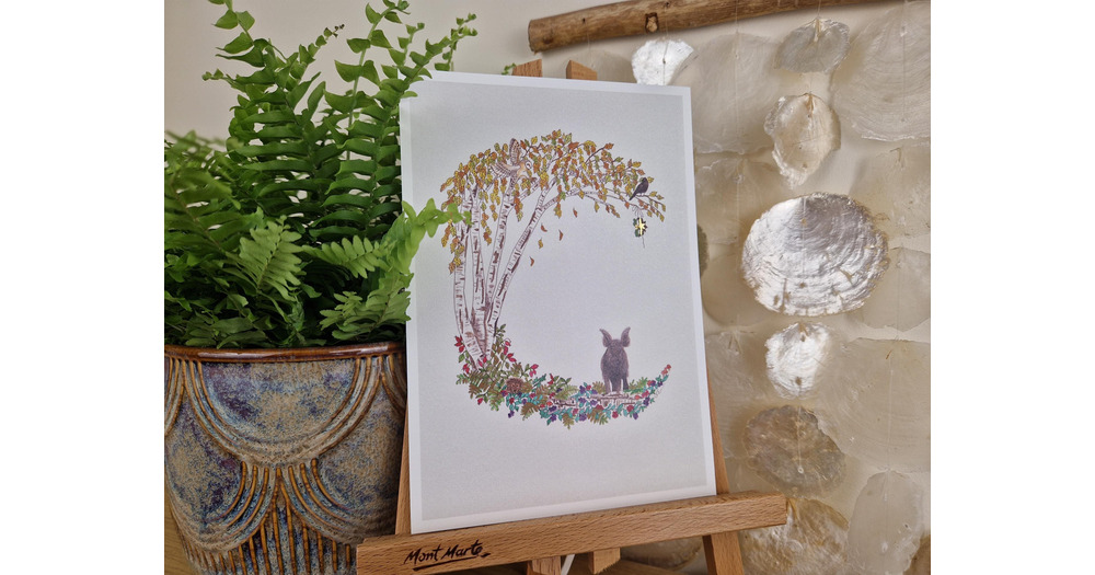 Samhain Crescent Moon A5 Art Print: Owl Wild Boar Watercolour Folklore Art