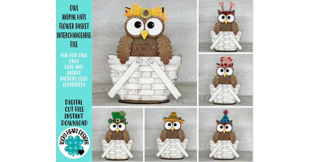 Owl Animal Hats Flower Basket Interchangeable File SVG, Farm, Christmas, Fall, Halloween, Tiered Tra