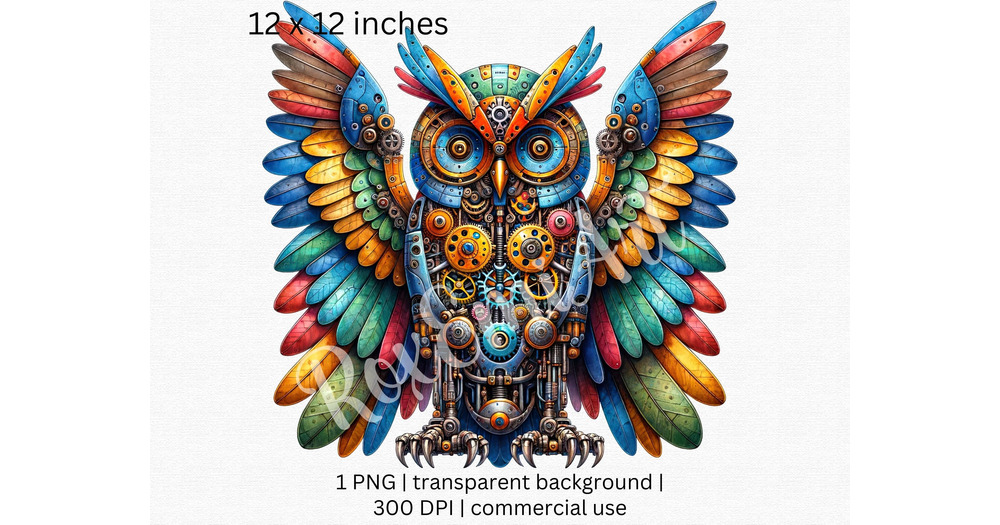Cute Colorful Steam Punk Owl PNG. Suitable for: Owl Stickers, Owl Mug, Owl Shirt or Any Other Design