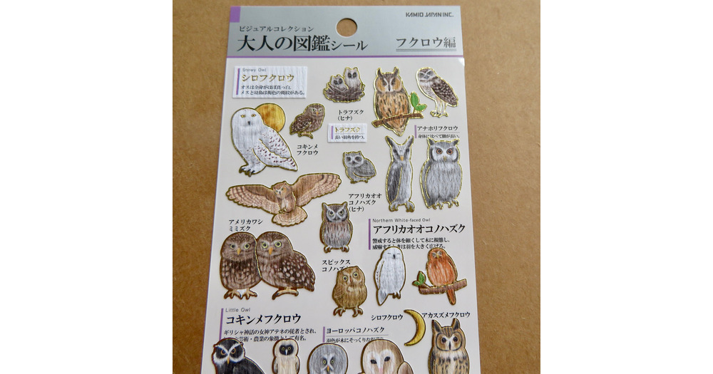 Kamio Animals ADULT VISUAL DICTIONARY Stickers, Owl Stickers, Gold Foil Stickers, Bird Animal Lover
