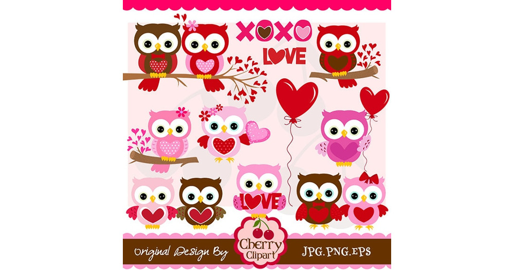 Valentine's Day Sweet Owls Clipart Set: PNG, EPS (Digital Download)