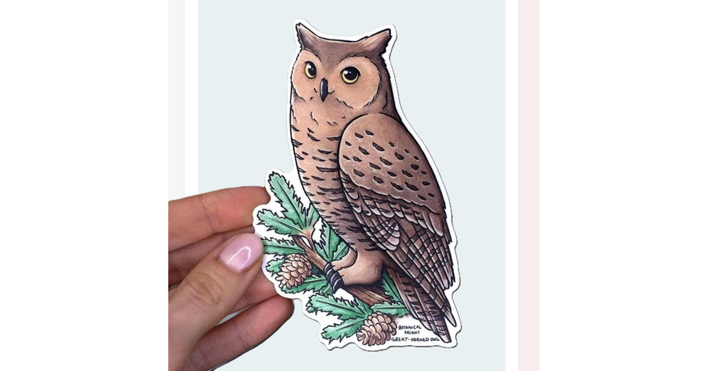 Great Horned Owl Sticker - Waterproof Vinyl Nature, Bird, & Wild Animal - Crafts and Scrapbookin