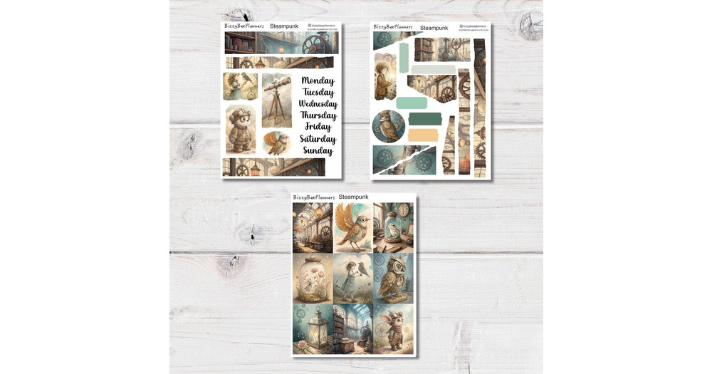 Steampunk Planner/Journalling Kit- Owl Stickers- Steampunk Stickers
