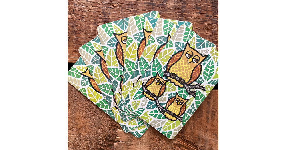 Vintage Cartoon Owls on Tree Branches Playing Cards - Set of 6