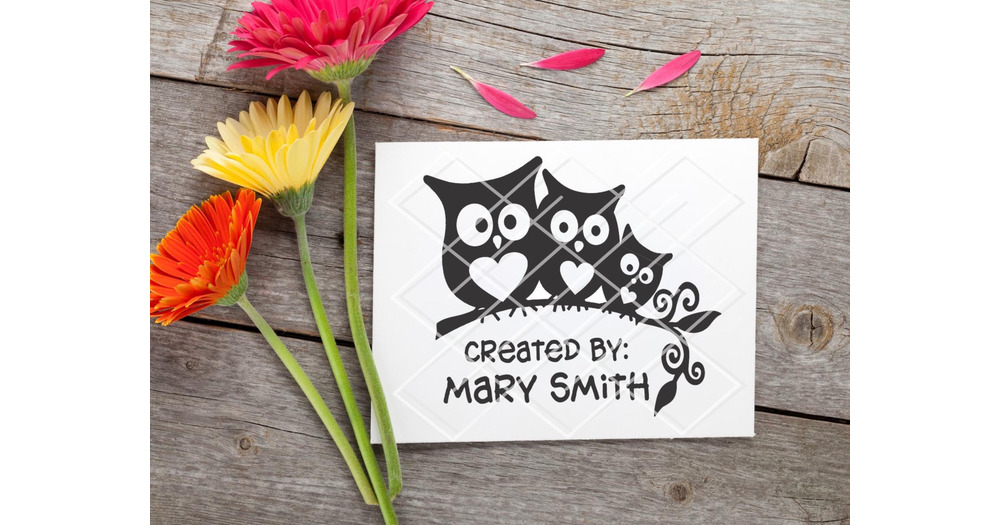 Personalized Owl Family Rubber Stamp: Card Making, Business Branding