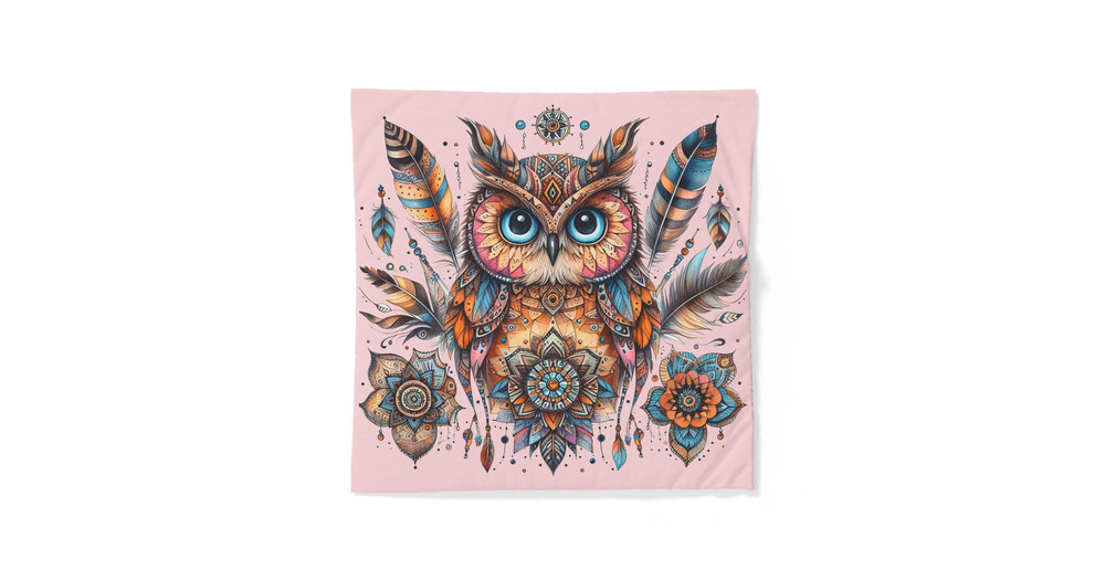 Boho Owl Mandala Cotton Duvet Cover | Feather Dreamcatcher Bedding