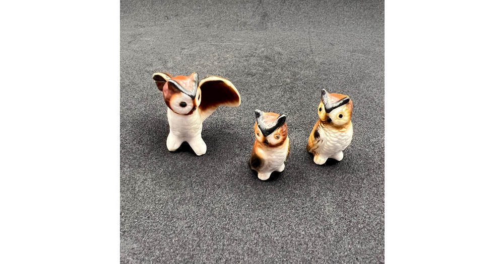 Vintage Tiny Miniature Owl Bird Figurines Set Of 3 Bone China Taiwan