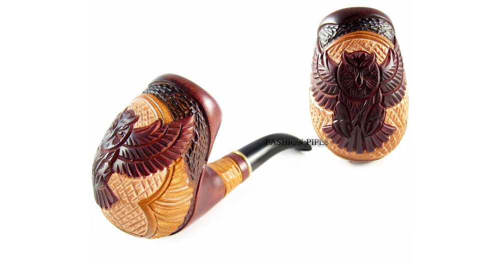 Set - Tobacco Pipe Wise "OWL" Wooden Pipe and Gift, Smoking Pipe Handcrafted Wood Pipe Tob