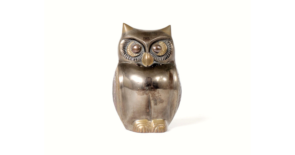 Vintage Mixed Metal Owl Figurine, Brass Bronze Copper Bird, Indian Handcrafted Sculpture, 1970s