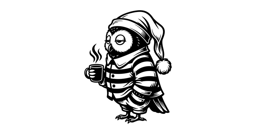 Sleepy Owl SVG - Morning Coffee Night Owl Pajamas Coffee Lover Bird Printable Cut File, Instant Down