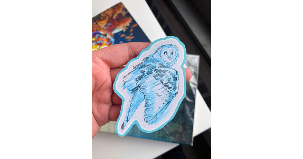 Blue Sketchy Owl Sticker