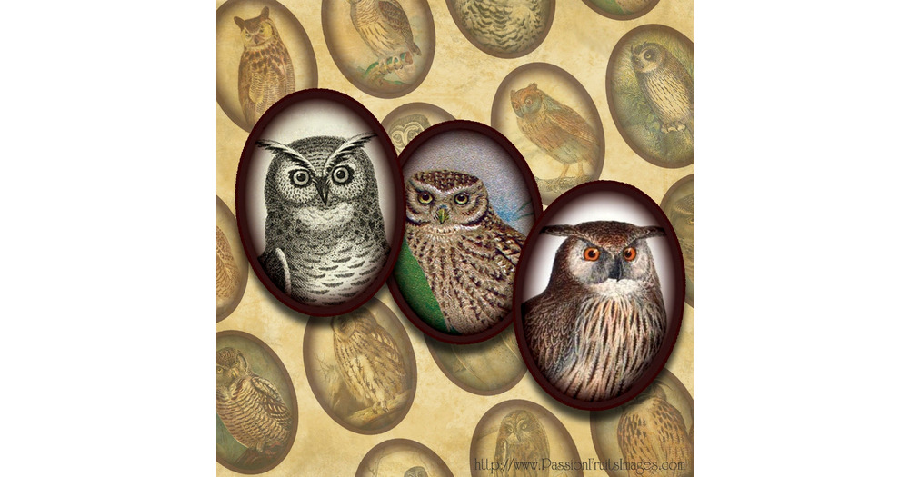 Victorian Owl Images Digital Collage Sheet- 18mm x 25mm cabochons-- Instant Download