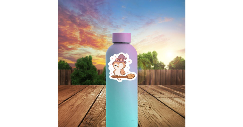 Kawaii Witch Owl Sticker, Cute Owl on Broom Vinyl Decal for Laptops Journals Planners