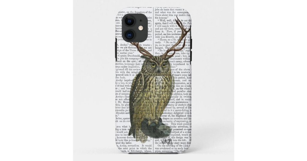 Owl with Antlers plain 2 iPhone 11 Case