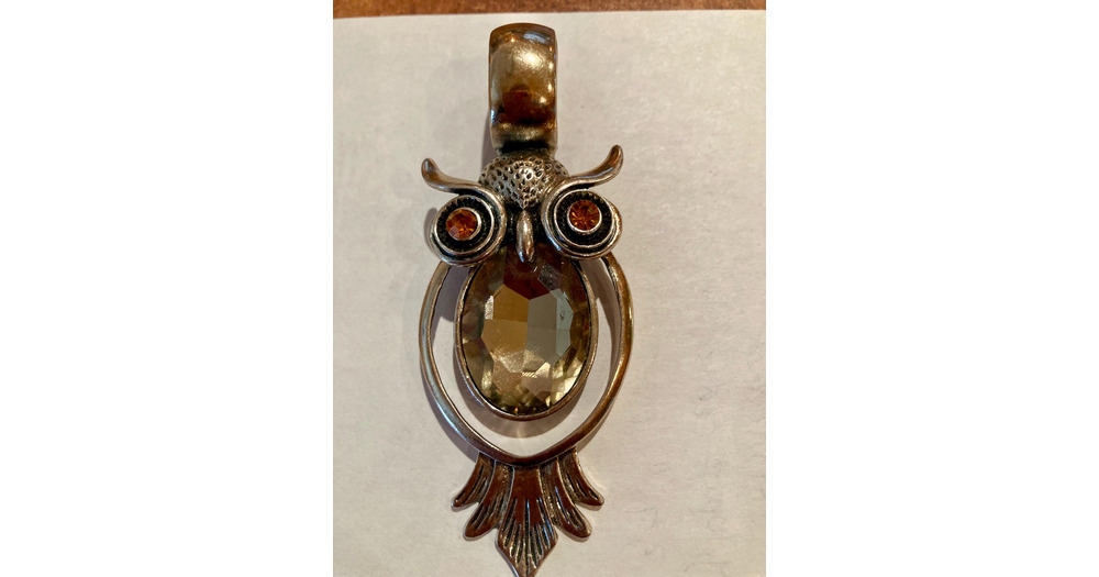 Large Horned Owl Pendant/ Scarf Enhancer, Smoky quartz and Citrine eyes