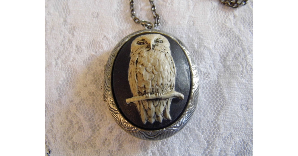 Owl Locket Stash Box Pill Necklace Photo Memory Keepsake Antique Silver