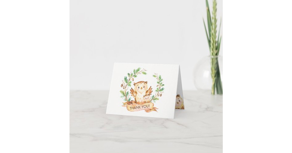 Woodland Owl Baby Shower Thank You Note