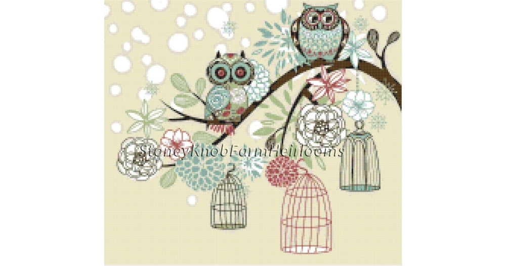 Owls Out of Their Cages ~ Whimsical, Birds ~ DIY Cross Stitch Pattern in Color and in BlackWhite Sym