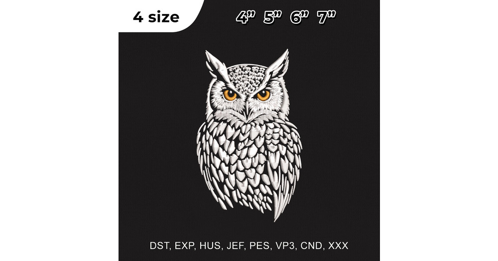 4 Size White Owl Embroidery Design, Owl Embroidery Design, Embroidery Design, Embroidery Machines Fi