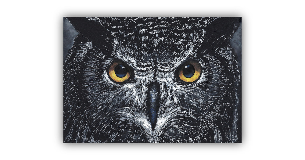 Great-Horned Owl Giclée Print – White Ink Drawing, Black Paper