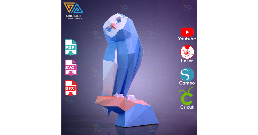 Owl 3D Papercraft – diy Paper Sculpture Template - SVG, DXF, PDF Download