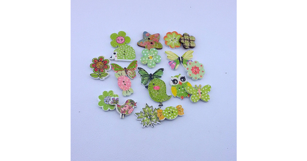 owl buttons,12 wooden buttons,green kids buttons,scrap booking buttons,multicolored decorative butto