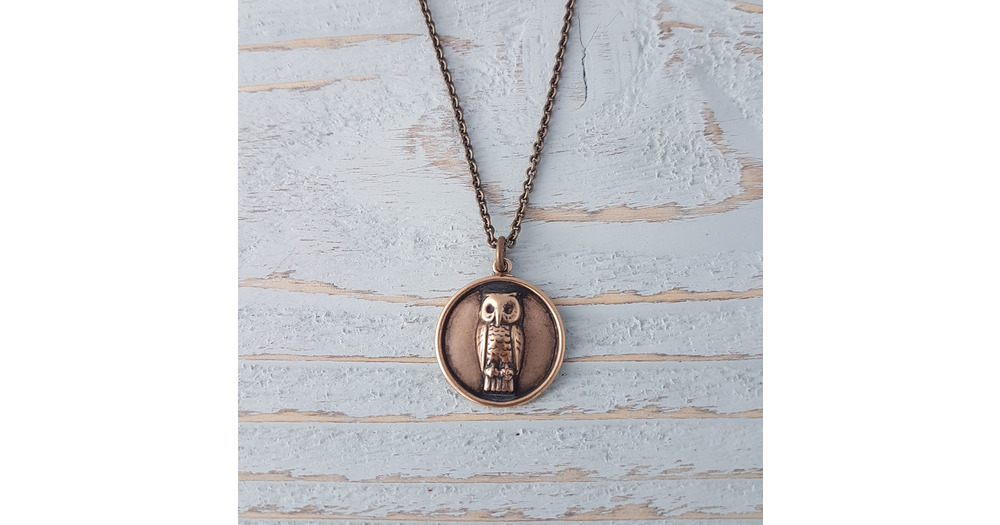 Engraved Owl Pendant Necklace: Solid Bronze Charm, Personalized Jewelry