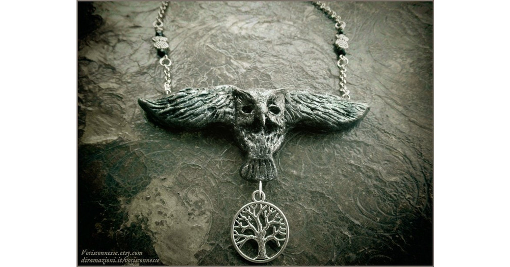 Flying Owl - Gufo in volo - necklace handsculpted owl in silver tone- handmade jewelry sculpt