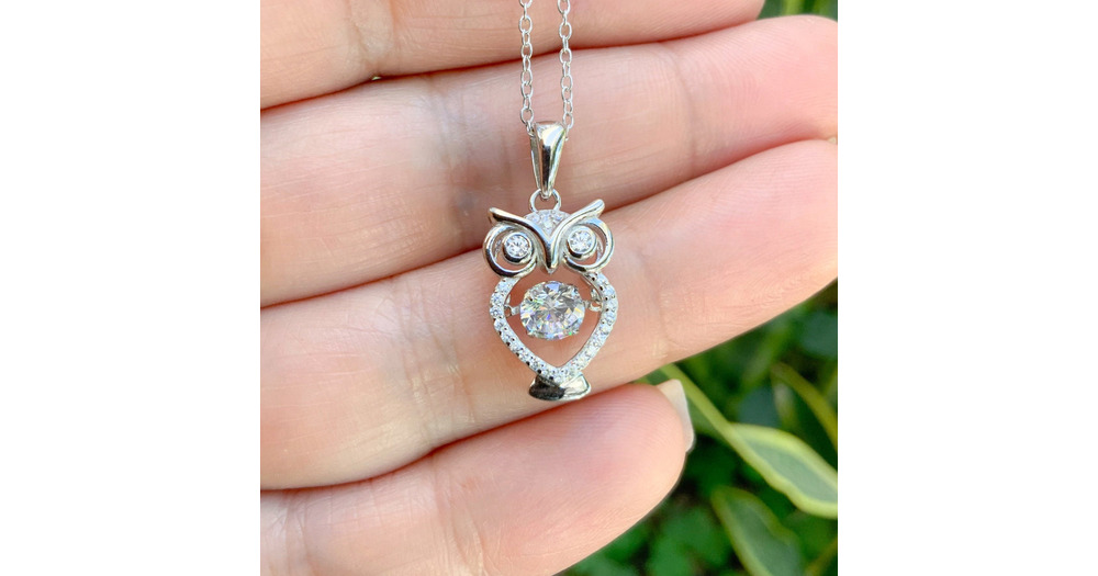 Sterling Silver Owl Necklace: Dancing CZ Pave, Animal Lover Gift