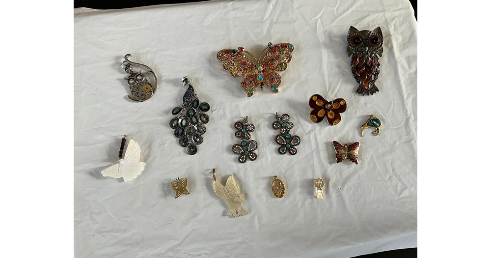 Birds-Owls-Butterflies are Featured in this Collection of Costume Jewelry Pendants Enhanced- Bag 221