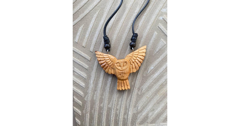 Hand Carved Owl Pendant Necklace, Santigi Wood Charm, Eco Friendly