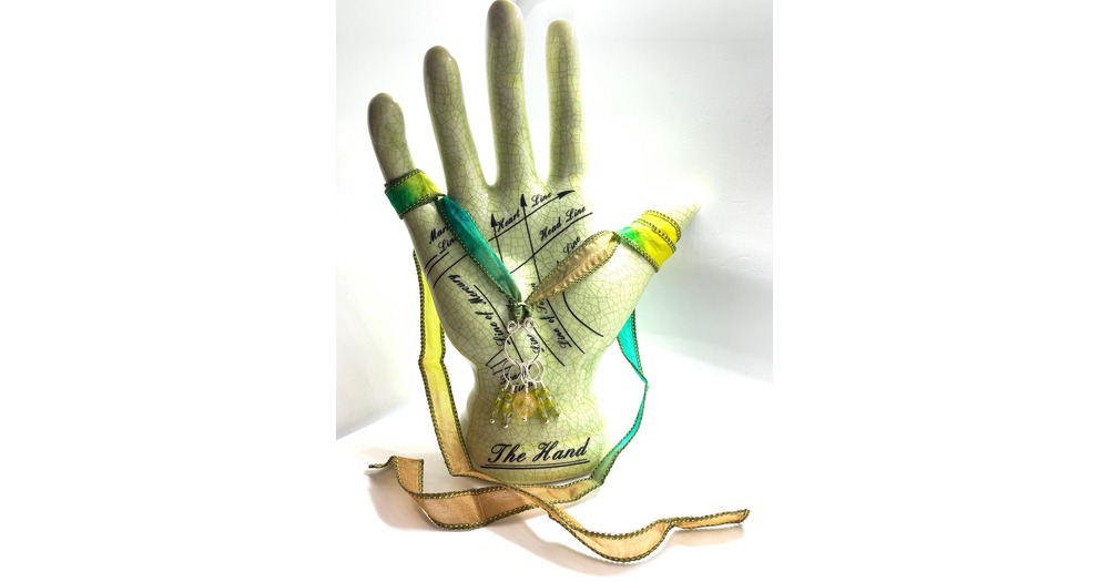 Knitters Stitch Marker Owls Charm Necklace With Natural Citrine And And Dyed Habotai Silk