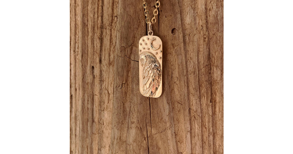Owl Moon Pendant Necklace Gold Plated Bronze Necklace Wise Barn Falconary Wisdom Intuition Halloween