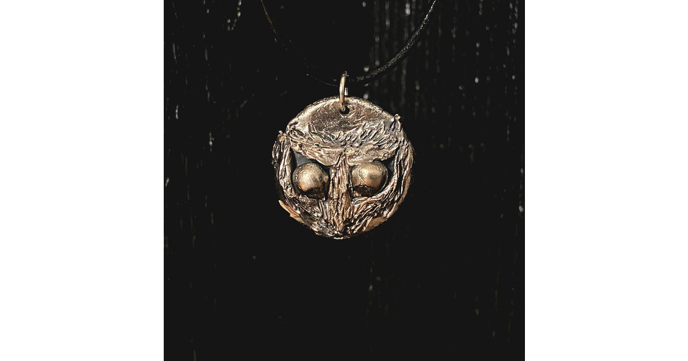 Pendentif Hibou, ras de cou cuir noir
