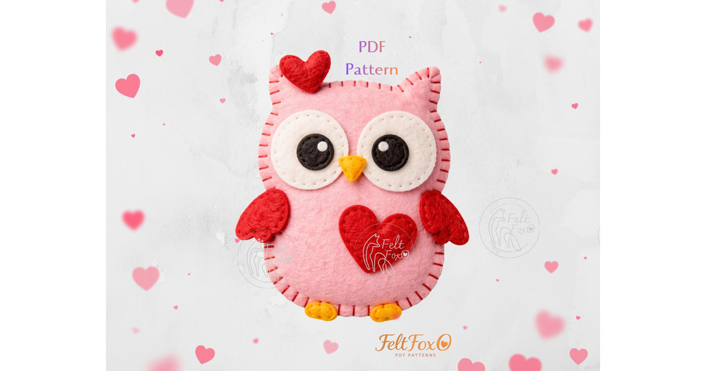 Felt Owl Sewing Pattern PDF, Valentine’s Day Ornament, Easy Beginner Hand Sewing Tutorial Felt