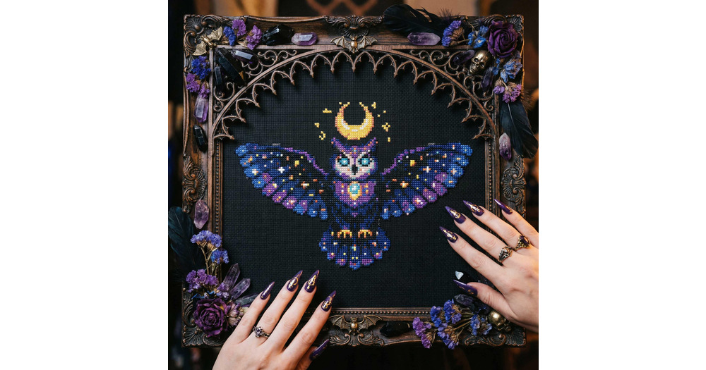 Mystic Moon Owl Cross Stitch Pattern: Dark Academia Celestial Art Embroidery PDF