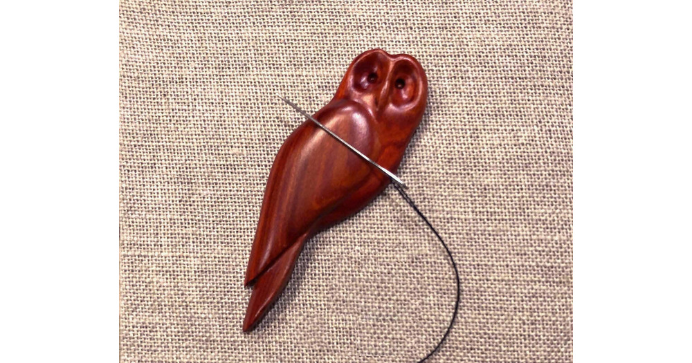 Owl Needle Minder, Hand-carved