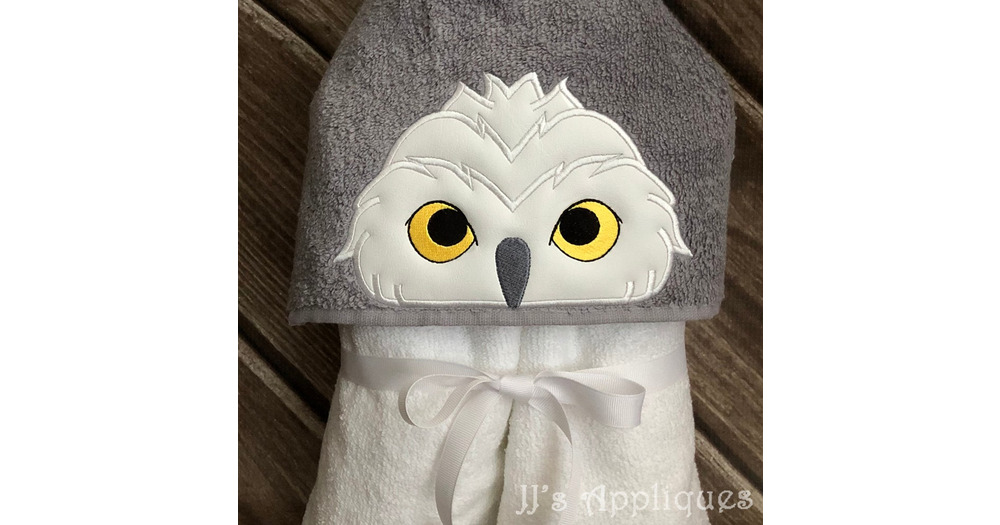 Snowy Owl Peeker Hooded Towel In the Hoop applique  digital design 4x4, 5x7, 6x10 hoops - Instant Do
