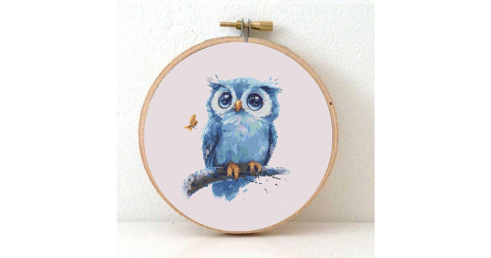 Floral Owl Cross Stitch Pattern, Nursery Decor Digital Download PDF SVG OXS Chart
