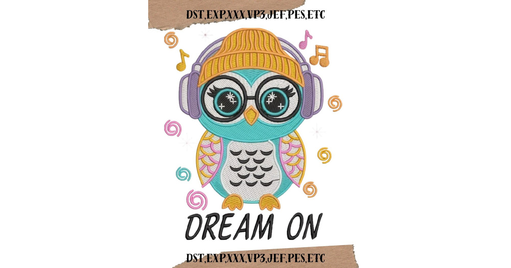 Music Lover Owl Embroidery Design, Headphones, 3 Sizes (Digital Files DST,XXX,VP3)