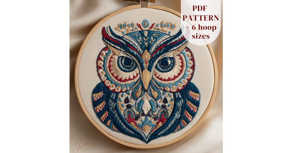 Forest Owl Hand Embroidery Design, Woodland Bird Embroidery Pattern, Forest Animal Embroidery PDF, P