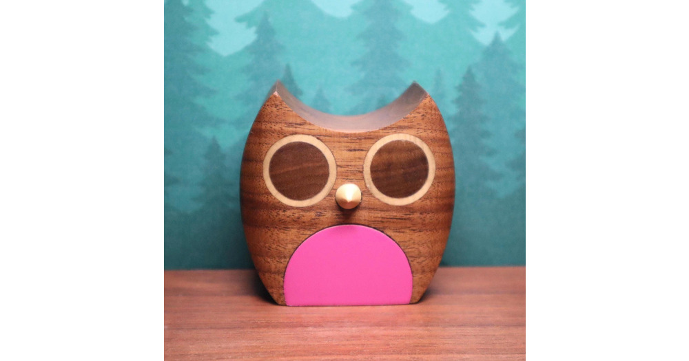 Handmade Walnut Owl Ornament: Pink Scandinavian Woodland Decor