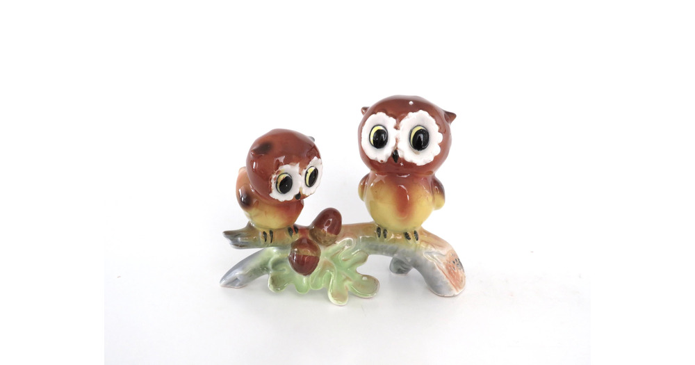 Vintage Big Eyed Owl Figurines on a Branch