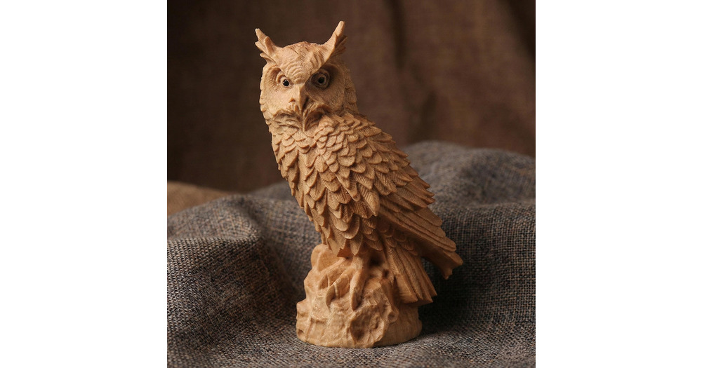 Wooden Owl Figurine Decor,Decorative Owl Statue for Bookshelf, Desk or Nightstand