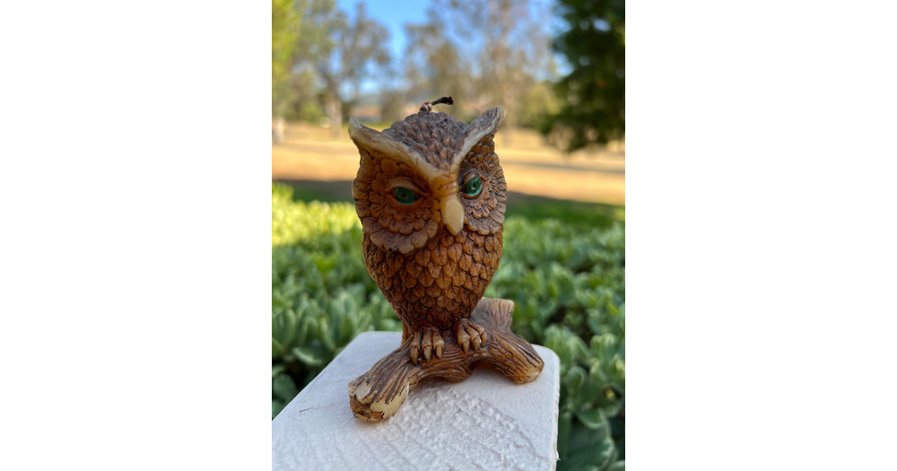Vintage Signed Wax Owl Figure, Handarbeit 1989