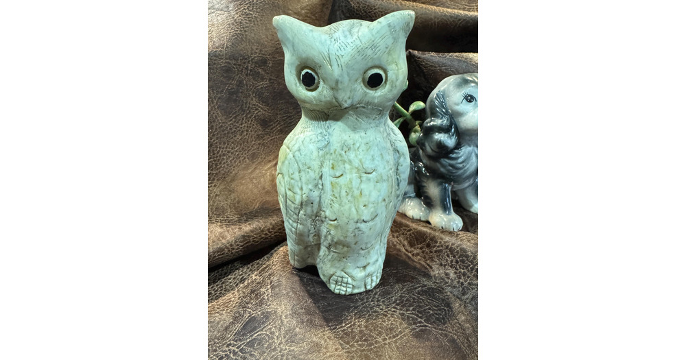 Vintage Folk Art Crushed Oyster Shell Owl Figurine