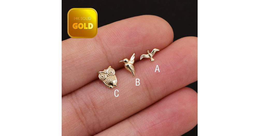 14k Solid Gold Owl Helix Stud Hummingbird Cartilage Earring Conch Tragus Earring Eagle Stud Earrings