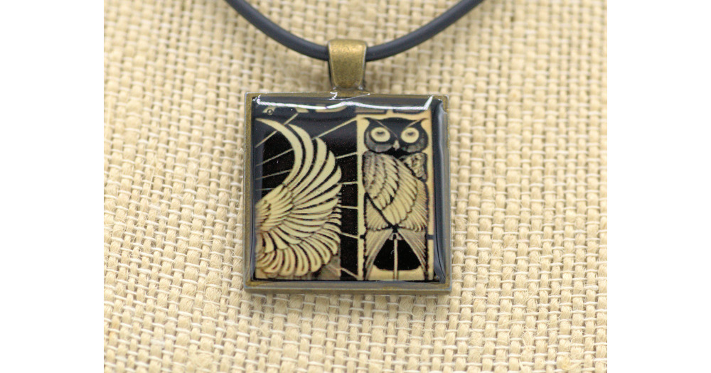 Resin Pendant, Owl, Black, Yellow, 1 inch, Square, Bird, Wing