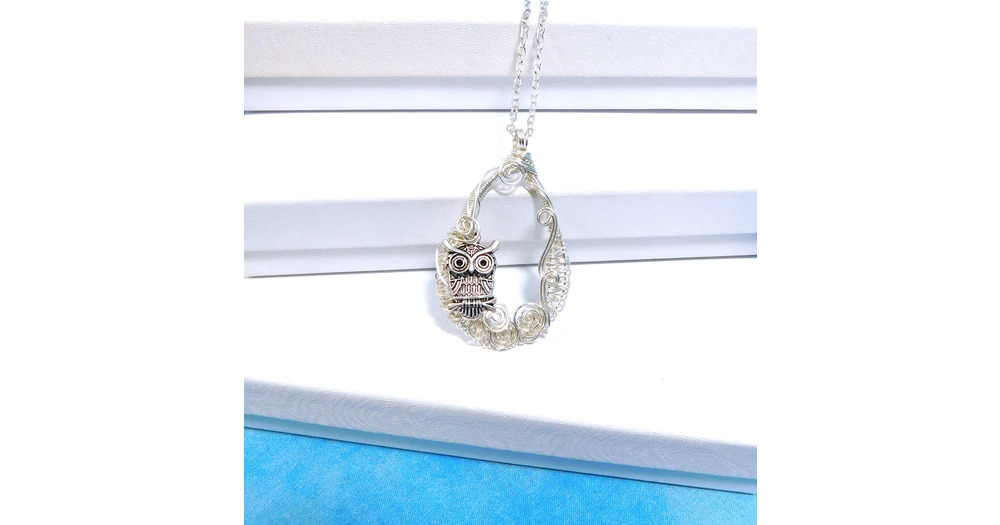 Artistic Owl Necklace, Artisan Crafted Woven Wire Wrapped Bird Theme Pendant, Unique Handmade Wearab